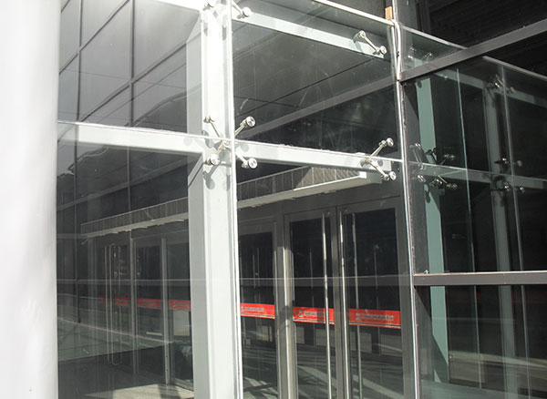 该工程位于陕西省咸阳市渭城区底张镇。该点支式幕墙工程采用钢框架支承结构。点支式玻璃幕墙配件采用恒安牌220系列不锈钢驳接爪和不锈钢浮头对心驳接头。